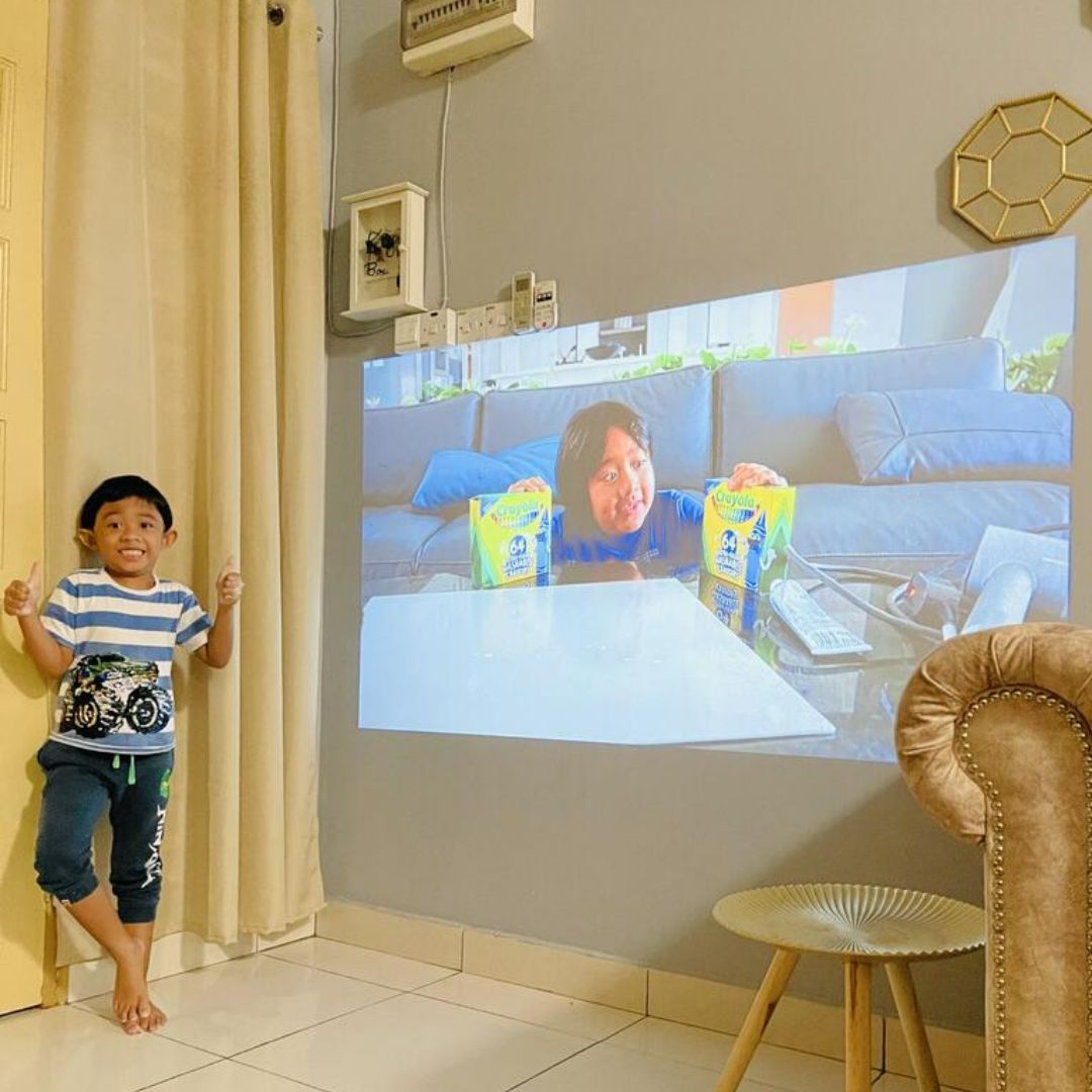 "Anak saya suka sekali nonton kartun di layar lebar di dinding. Bikin dia jadi penurut hahaha"